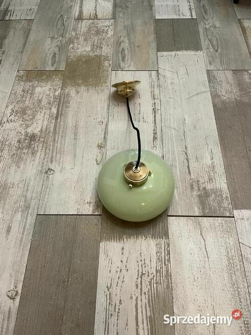 Stara lampa wisząca z kloszem. W pełni sprawna, oprawka na gwint E27 i mosiężny koszyczek. Klosz typu beret - posiada ...