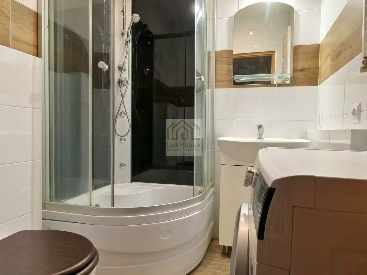 - łazienkę z kabiną prysznicową oraz pralką,