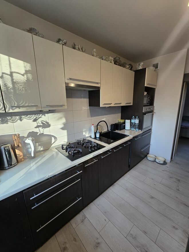 Kuchnia z oknem umeblowana z możliwością pozostawienia wszystkiego- piekarnik, płyta indukcyjna, lodówka.